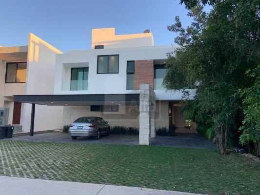 Esta magnífica residencia ofrece vistas frontales a un hermoso lago y vistas traseras al campo de golf, brindando un entorno natural y relajante. La casa cuenta con acabados de lujo, incluyendo pisos y muros revestidos en mármol negro marquina y carpintería de encino.