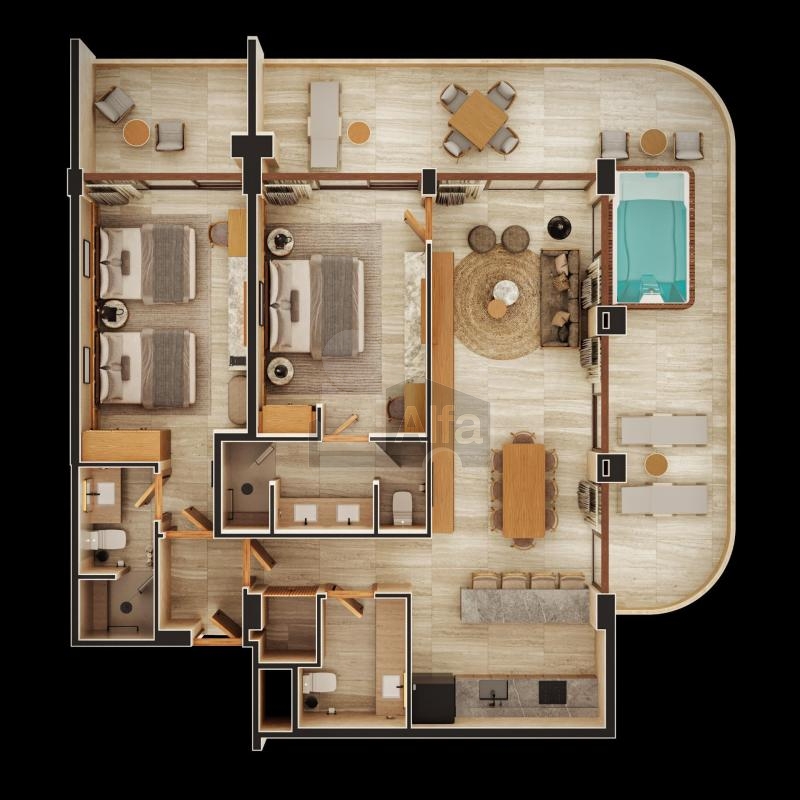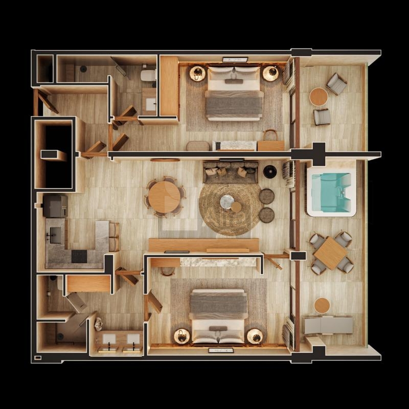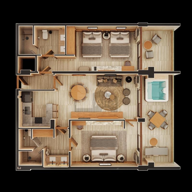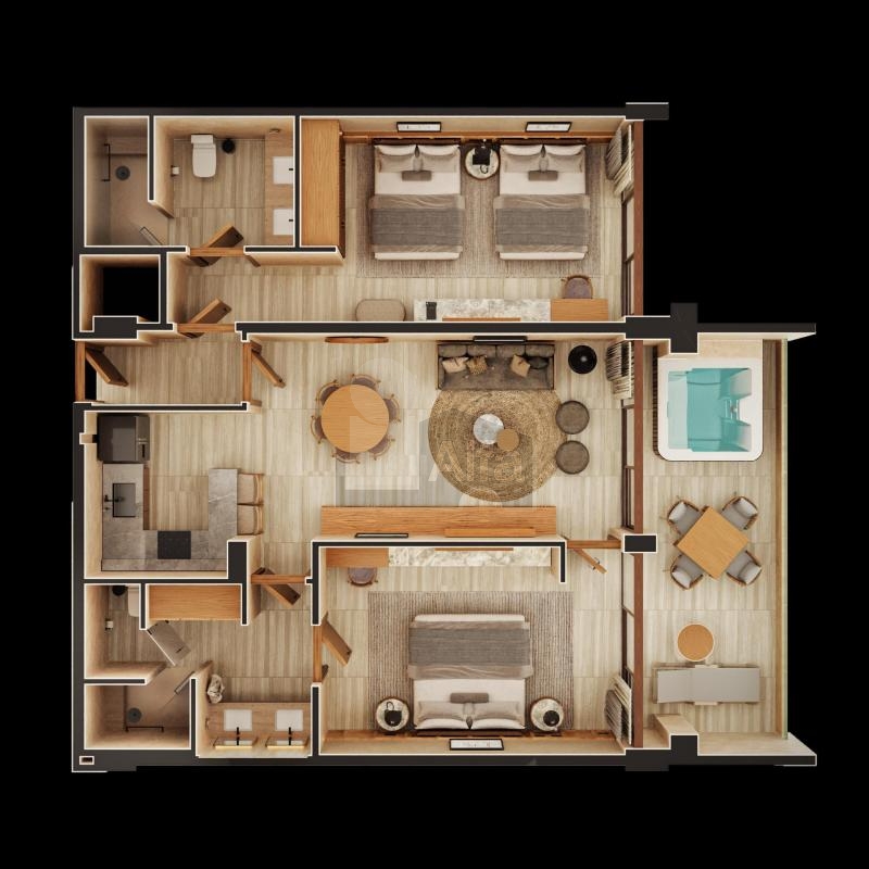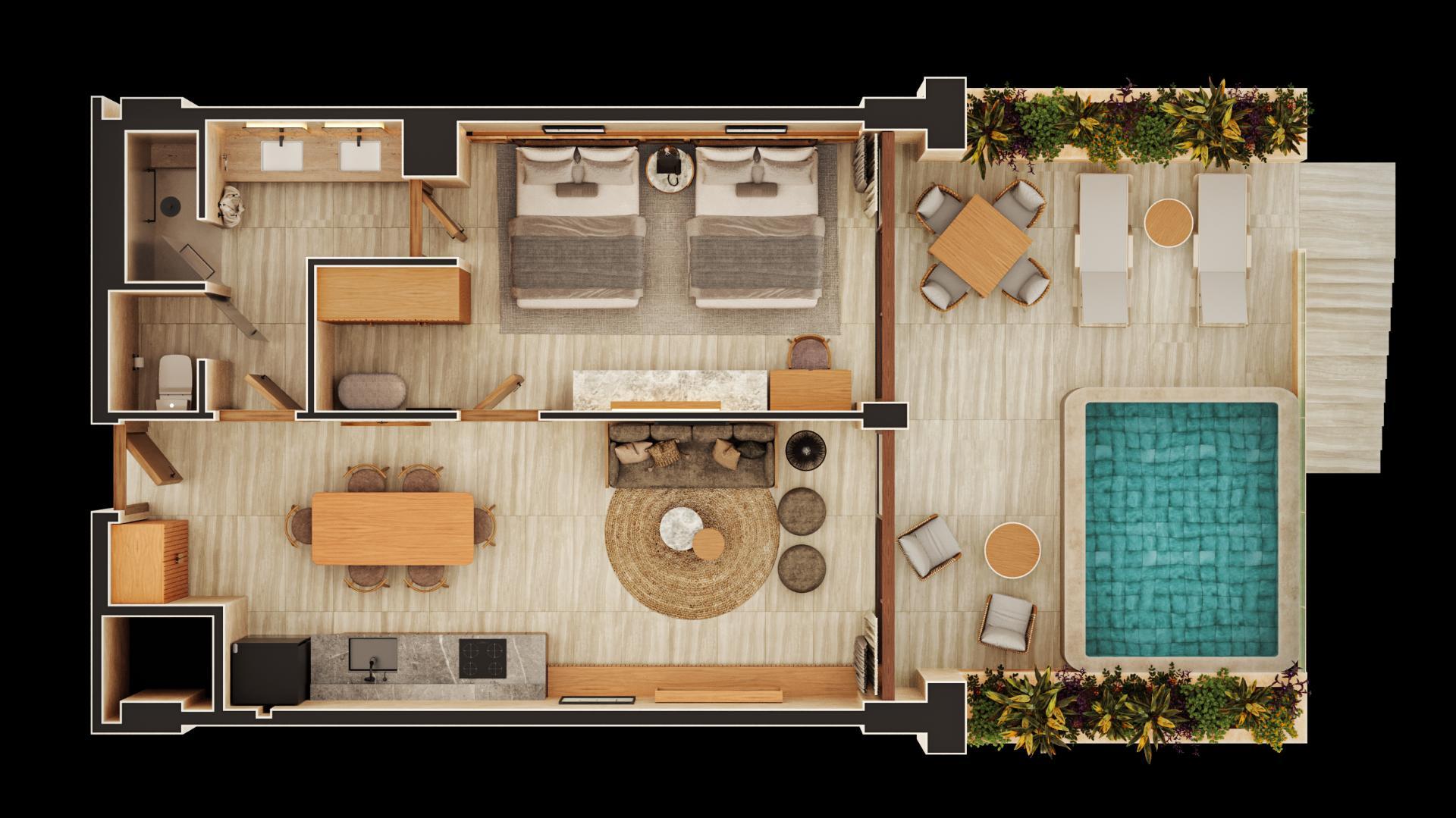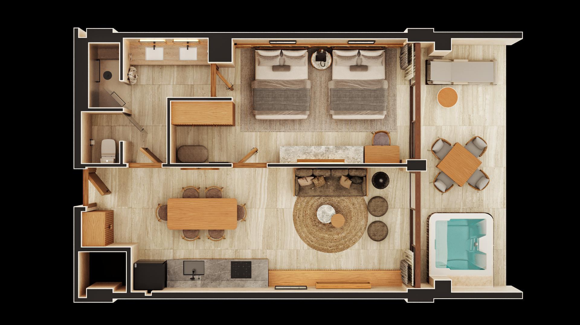73 Residencias completamente equipadas y amuebladas, 6 tipologías (Loft 68m2, 1 habitación 90m2, 2 habitaciones 132m2, 2 habitaciones 181m2, 3 habitaciones 221m2, 3 habitaciones 231m2) Residencias de 2 y 3 habitaciones incluyen un sistema de lock-off para mayor flexibilidad y comodidad. Operación Hotelera (VOILÁ HOTELS) Modelo de Negocio cuatro diamantes, enfocado en experiencias excepcionales, altos retornos, equipo experto y modelo innovador.
